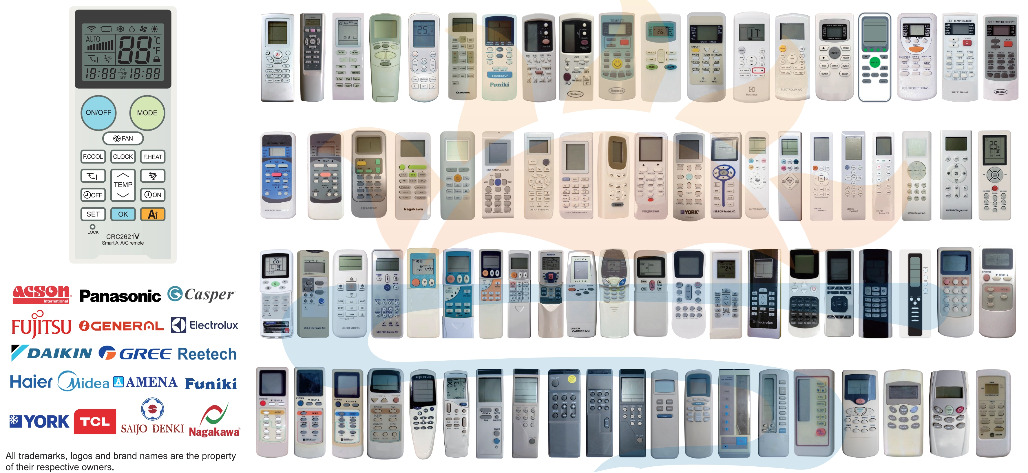 | CRC2621V | Universal Air Conditioner Remote Control | Local and Non-Brand in South-Asia Market | Infrared (IR) | High-quality ABS plastic |